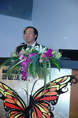 张仁:尊敬的陈总,杨总,尊敬的外国朋友,尊敬的各位设计师,女士们先生们大家上午好!非常高兴参加东易日盛意德法家的drapilux布艺新闻发布会,首先我代表中国建筑装饰协会,代表我们的装饰行业,向本次发布会表示热烈的祝贺!大家知道,伟大的生活,伟大的时代,诞生了我们中国的伟大的家装,也诞生了家居文化,也诞生了伟大的生活方式。东易日盛是中国最有品牌的家装公司,在我们陈总杨总的带领下,东易日盛十年磨一剑,十年辉煌,引领了家装的潮流,示范了家居标准化,我们的家装完全伴随着改革开放产生的一个显现产物,有三个现象,一个是全民都在家装,经济现象不完全统计,06年我们全国的装饰行业完全施工产值达到1.2万亿,其中家装超过八千个亿,还不包括马路游击队。文化现象,家居是文化,是科学,是艺术,同时体现了改革开放的成果,对构建小康社会,构建和谐社会做出自己突出的贡献。今天我们要发布的drapilux的布艺就是为我们家装穿上一件美丽的衣裳,为我们家居建设带来健康,生态环保的理念,我们感谢陈总,杨总为中国消费者,为北京的消费者又带来一件健康的产品,谢谢你们,最后预祝本次发布会圆满成功,祝贺东易日盛企业越来越辉煌,谢谢大家!