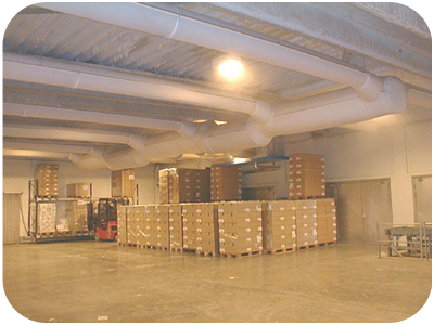 7、节省仓库面积 FAERY法瑞管道式布风口采用圆形管、椭圆管、半圆管、1/4圆管设计,可直接吊装在天花板上,不占用空间,节省仓库面积。